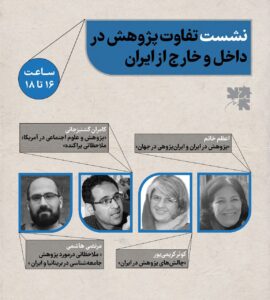 سخنرانان نشست «تفاوت پژوهش در داخل و خارج ایران» کوثر کریمی‌پور، دانش آموخته علوم اجتماعی از دانشگاه مک‌مستر و پسادکتری شبکه‌های پیچیده و علم دادۀ اجتماعی از دانشگاه شهید بهشتی؛ کامران گشنیزجانی، دانشجوی دکترا در دانشگاه برنداس در رشته تاریخ و همچنین مرکز مطالعات خاورمیانه و مرتضی هاشمی، استاد حوزه علوم اجتماعی در بریتانیا بودند. در ادامه، خلاصه و اهم مطالب عنوان شده در این نشست آورده شده است: