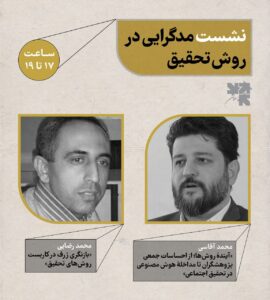 سخنرانان نشست «مدگرایی در روش تحقیق» محمدرضایی، دانش‌آموخته دکتری علوم اجتماعی و استاد دانشگاه فرانکفورت و محمد آقاسی، پژوهشگر، نویسنده و مدرس در حوزه علوم اجتماعی بودند. در ادامه، خلاصه و اهم مطالب عنوان شده در این نشست آورده شده است: